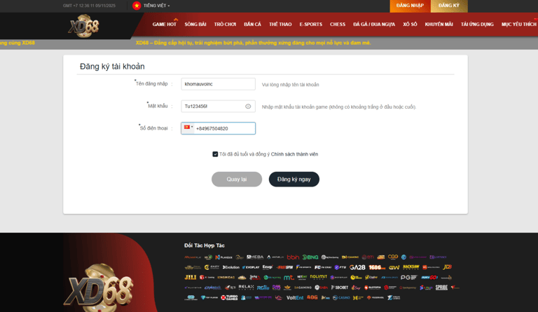 Nhập đầy đủ những thông tin mà nhà cái XD68 yêu cầu sau đó nhấn đăng ký ngay !!! Rất đơn giản phải không ?