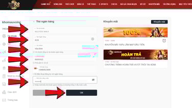 Sau đó mọi người vào phần nạp tiền sẽ hiện lên phần điền thông tin mọi người điền đầy đủ thông tin ngân hàng chính xác vào các ô trống